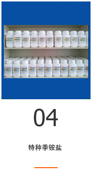 我們主營的系列產品多達200多種,是國內生產和銷售相關產品種類較全的一家!產品種類覆蓋了高含量季銨鹽(粉末,結晶,膏體),低含量季銨鹽(液體,膏體),特種季銨鹽,季銨堿等等,并且可以提供相關產品的定制化服務!
